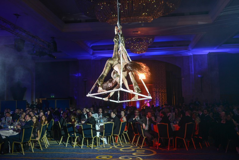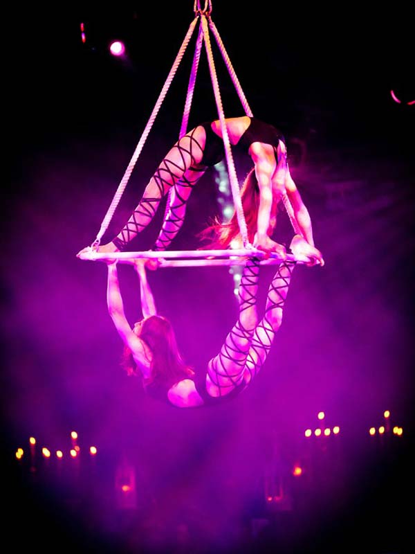 The only aerial pyramid to be performed in the UK. This exciting unique act is a captivating and powerful performance, perfectly illustrating the collaboration between the duo. A fast spinning flexible performance which can be enjoyed from all angles.